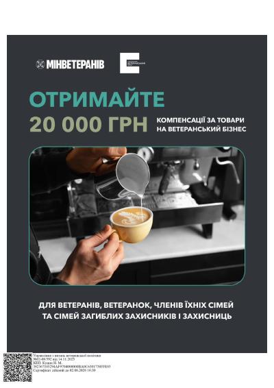 Український ветеранський фонд Мінветеранів компенсує до 20 тисяч гривень на купівлю предметів та товарів для ведення ветеранського бізнесу.