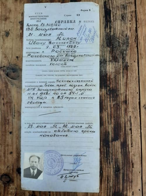 Іван Мирон народився 9 березня 1929 року в селі Росішка Рахівського району у сільській родині, тут мешкає й зараз.