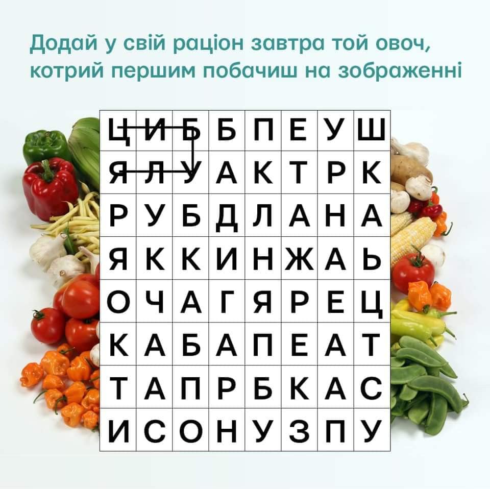 Тож відкривай мій кросворд і випадковим чином обирай овоч, який вже завтра тобі треба включити в свій раціон. А в наступні дні можеш обирати овочі до тарілки самостійно або ж користуватися моєю підказкою.