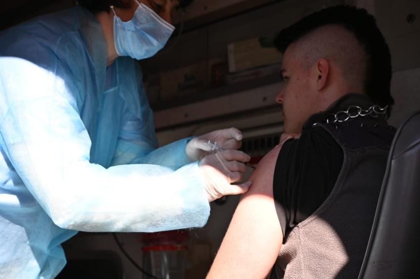 Хлопець разом із татом прийшов у мобільний пункт вакцинації, що цими вихідними функціонує біля пішохідного мосту в обласному центрі Закарпаття.