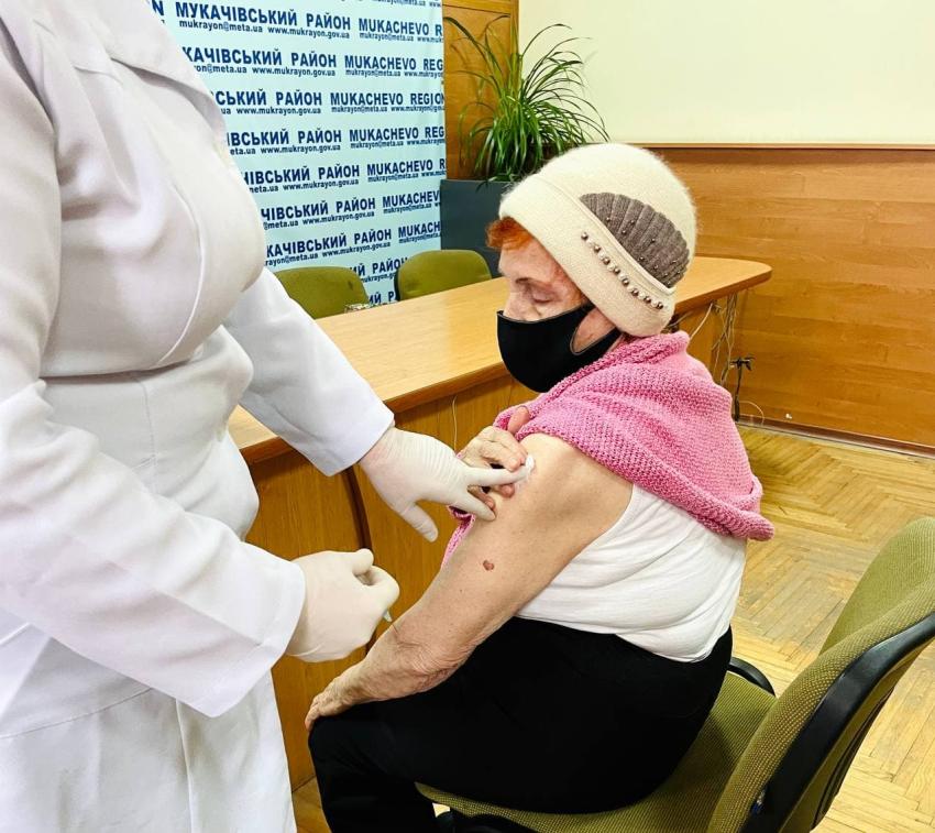 Сьогодні 92-річна Раїса Давидян зробила бустерне щеплення у Центрі вакцинації в Мукачеві.