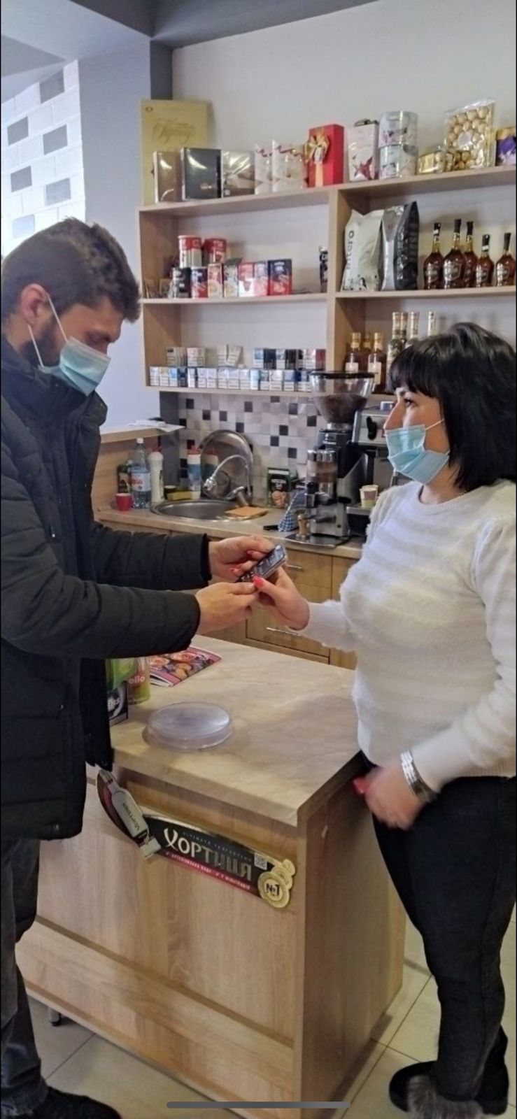 Перевіряють наявність сертифікатів вакцинації, негативного результату тестування на COVID-19 методом полімеразної ланцюгової реакції або експрес-тесту на визначення антигена коронавірусу SARS-CoV-2 (дійсні 72 год.) або документа про одужання особи від зазначеної хвороби, дотримання маскового режиму як продавцями так і покупцями.