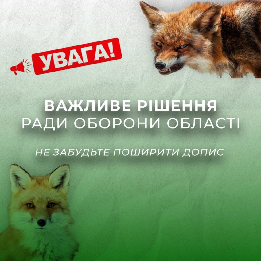 За результатами засідання комісії, 19 та 26 березня 2023 року біля локацій, де найчастіше фіксувались випадки сказу тварин буде проведено регуляцію чисельності лисиць поблизу таких населених пунктів як: