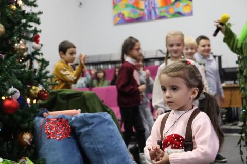 Розпочався захід яскравим вертепом, продовжився захопливою новорічною пригодою - виставою, наповненою танцями, співами та майстерною грою талановитих акторів і маленьких артистів.