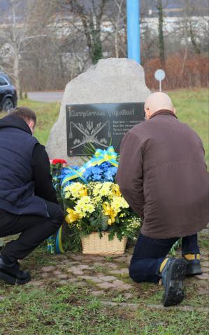 Сьогодні заступник голови Мукачівської районної військової адміністрації – Яворський Ігор Володимирович, заступник голови Мукачівської районної ради - Тарабій Роман Васильович, голова Кольчинської селищної ради Дуб Микола Васильович, депутат Закарпатської обласної ради – Горват Георгій Андрійович та представники громадськості району, взяли участь у заходах присвячених Дню Гідності та Свободи України біля пам’ятного знаку Героям Небесної сотні в селищі Кольчино.
