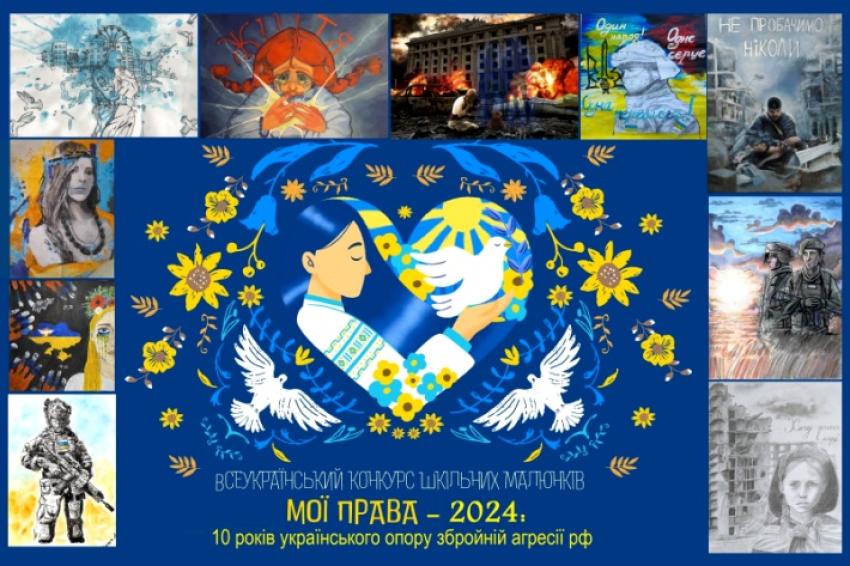 Український координаційний центр з підвищення правової освіти населення за участю Української молодіжної правничої асамблеї, благодійного фонду «Об’єднання світових культур», Української асоціації підтримки творчої молоді запрошують учнів закладів загальної середньої освіти України віком до 18 років узяти участь у XVІІ Всеукраїнському конкурсі шкільних малюнків «Мої права-2024: 10 років українського опору збройній агресії рф» з нагоди Міжнародного дня захисту дітей.