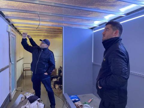 "Один комплекс вже майже готовий-тривають оздоблювальні роботи, облаштовано лазню та закуплено пральні машини і сушки, проведено освітлення, йде покраска стін спеціальною прорезиновою водостійкою фарбою. Також встановлено розетки для зарядки мобільних телефонів.