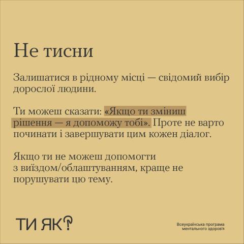 Постійно переймаючись і годинами сперечаючись про переїзд, ти можеш тільки погіршити свій моральний стан і стосунки з близькими людьми, що перебувають поблизу лінії бойових дій.