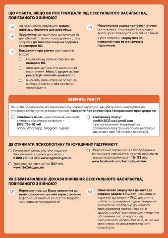 Ви постраждали від сексуального насильства в умовах воєнних дій? Це серйозний злочин, який не потрібно замовчувати. Такі злочини не мають залишатись безкарними!