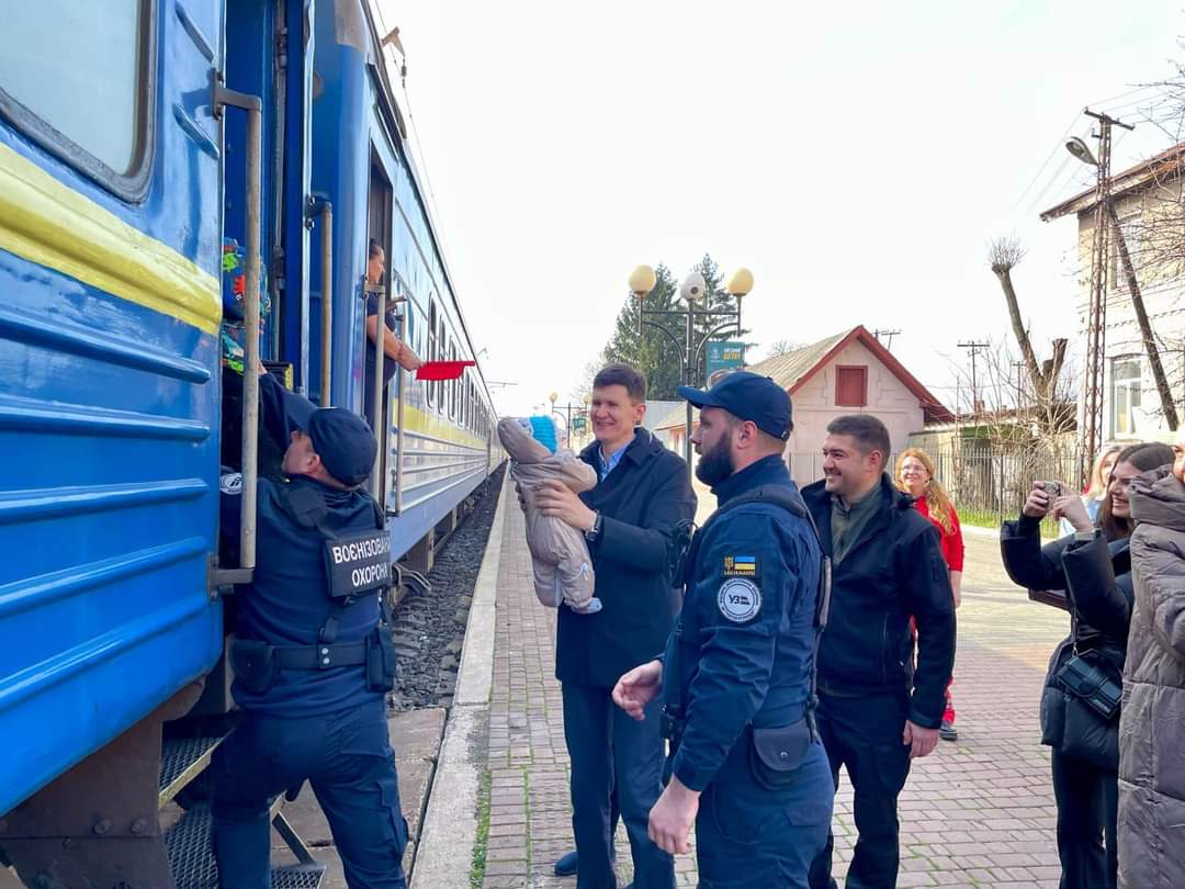 Очільник Мукачівської районної військової адміністрації Едгар Токар ️разом з Петром Добромільським - заступником голови Закарпатської ОВА , фахівцями соціальних служб та представниками Червоного Хреста Закарпаття зустріли 10 родин з Покровського району Донецької області.